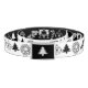 A unique idea for Christmas fashion this holiday season for the annual Christmas party at home or office. Holiday icons were used to create rows of candy canes, bells, wreaths, trees, and poinsettias placed in a row on both sides of the belt. The design is simple black iconic images repeated in a row over a white background on front with the colors reversed on the back and the buckle.