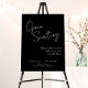 This modern, minimalistic wedding open seating sign features an elegant script front. The design plays with the simplicity of a black and white typography design. It's the perfect choice for couples who appreciate clean and modern elegance.