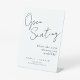 This modern, minimalistic wedding open seating sign features an elegant script front. The design plays with the simplicity of a black and white typography design. It's the perfect choice for couples who appreciate clean and modern elegance.