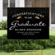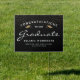 Black White Script Gold Cap Graduation Yard Sign