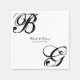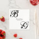 This design features the bride's and groom's initials as the main focus of the design. Personalized script initials using script font typography creates a perfect fusion of modern and elegance. A simple custom minimalist wedding napkin design with modern black and white monogram. Matching wedding invitations and stationery items are also available. To re-position the initials please click "Click to customize further" link when personalizing details.