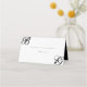 This design features the bride's and groom's initials as the main focus of the design. Personalized script initials using script font typography creates a perfect fusion of modern and elegance. A simple custom minimalist wedding place card design with modern black and white monogram. Matching wedding invitations and stationery items are also available. To re-position the initials please click "Click to customize further" link when personalizing details.