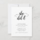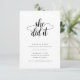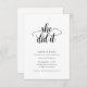 Having your Black White Script She Did It Graduation 2025 Invitation match the theme of your party is a great detail that your guests will appreciate. The thoughtfulness of a consistent party theme is often appreciated and can show your guests that you can host a cohesive event.