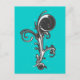 Image is from my digitally colored ink drawing. There is a black and white swirl scroll on a aqua blue background. See my store Art by MAR for matching products with this design.