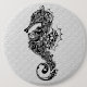 Black & White Seahorse-Tattoo Style Pinback Button