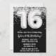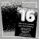 Black White Silver 16th Birthday Party Invitation