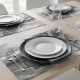 Black White Silver Fluid Liquid Marble Abstract Cloth Placemat