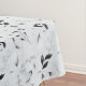 A beautiful black, white, silver, gray floral table cloth. A beautiful soft pattern that will compliment almost any decor.
