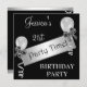Male or Female Birthday Party Invitation. All Events, Celebrations, Announcements and Birthday Party Invitations. Suitable for all age birthdays and events. Rsvp is available upon request in similar style. Beautiful Fun Silver White Metal Plate with Party Time text layered over black with Light Silver Trims. Balloons, Streamers and Silver Bows. Customise to change style and size of font to personalise.