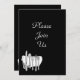 A custom invitation or announcement template with elegant script letters and a set of silverware on a pretty table napkin in black, gray and white.