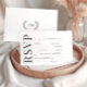 Black white simple floral wedding RSVP cards