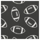 American football fabric with a simple design of the outline of footballs in white against a black background.