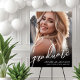 This simple and minimalist graduation party sign features a full-page photo with a black gradient at the bottom, overlaid with white text for a sleek and modern look. "Graduate" is displayed in elegant handwritten script, with the graduate’s name, "Class of 2026," and the school name below in classic white fonts, ensuring a bold and readable design.