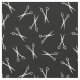 Black fabric with a modern pattern of scissors in white. Perfect for barbers, hair dressers, and similar.