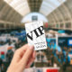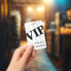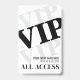 Perfect for fashion shows, concerts, conferences, speakers, or any special event, this VIP badge is designed to make guests feel important—including birthday parties. The front features "VIP" in bold black, displayed diagonally. Behind, a light gray shadow effect adds depth with a subtle 'VIP' above and below. To the right, the event name and date create a sleek, modern look, and "All Access" is placed at the bottom for a clean finish. The back is left blank.
