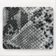 Fun animal print of black and white snake skin. This is a closeup photo where you can almost see the 3D of the scales. But the item will not have any actual texture.