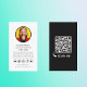 Modern black and white business card with social media icons for a content creator or an influencer featuring a scannable QR code on the back, and on the front it has the profile picture, account handle, description, and space to add your email, website, or any custom text you need. Remove or add social media icons or personalize it by clicking the button to edit the design.