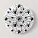 Black and White spider web Halloween gift button badge. Cool fun pattern with Spooky Halloween cobweb design. Custom white with big and small scary crawling spiders.