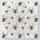 Black and White spider web Halloween Coaster. Cool fun pattern with Spooky Halloween cobweb design. Custom white with big and small scary crawling spiders.