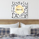 Stylish Dalmatian spots pattern with a faux gold foil label featuring customizable name and monogram templates. A cute monogrammed canvas print with black and white spots pattern and golden elements. To change the font colors and font styles click the "personalize" button and then click the "customize further" button.