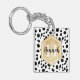 Stylish Dalmatian spots pattern with a faux gold foil label featuring customizable name and monogram templates. A cute monogrammed keychain with black and white spots pattern and golden elements. To change the font colors and font styles click the "personalize" button and then click the "customize further" button.