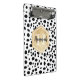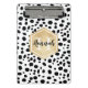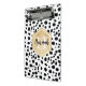Stylish Dalmatian spots pattern with a faux gold foil label featuring customizable name and monogram templates. A cute monogrammed mini clipboard with black and white spots pattern and golden elements. To change the font colors and font styles click the "personalize" button and then click the "customize further" button.