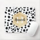 Stylish Dalmatian spots pattern with a faux gold foil label featuring customizable name and monogram templates. A cute monogrammed mousepad with black and white spots pattern and golden elements. To change the font colors and font styles click the "personalize" button and then click the "customize further" button.