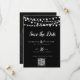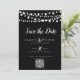Black and White String Lights Modern Script Save the Date Template for you to customize. Add your beautiful, photo to the back of the Invitation/Announcement.
