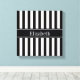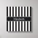 Black and White Stripe Pattern, Black Ribbon Name Monogram Label