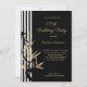 Black White Stripe Gold Bamboo leaf Birthday Invitation