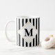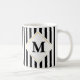 Black and white stripes with a white diamond with gold trim and a customizable monogram.