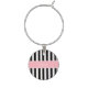 Black White Stripe Pink Name Monogram Wine Glass Charm