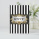 Black & White Stripe, Black Ribbon, Gold Framed Label Invitation Suite - RSVP 1