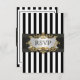 Black & White Stripe, Black Ribbon, Gold Framed Label Invitation Suite - RSVP 1