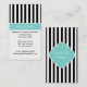 Black White Stripe Turquoise Ribbon Name Monogram Business Card