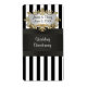 Customizable Invitations and accessories featuring a black & white striped pattern, black ribbon trim and a white gradient label with your choice of a silver or gold look frame.