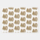 Three sheets of wrapping paper,, which includes a gold glitter 40th wrapping paper sheet, a black and white striped wrapping paper sheet and a gold glitter wrapping sheet. Please note there is not actual gold glitter on the gift wrapping sheets, but a design.