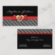 Black white stiped pattern with red bow and jewel business card template that features a black and white pattern with diagonal stripes and a red ribbon across it with a bow and a heart shaped jewel also in red with gold outline and strass which adds a little bling. Note the bow and the heart diamond jewelry is a "printed on" illustration and not a real crystal, so are the strass. An elegant and stylish feminine business card design. Trendy, fashionable and modern perfect for professional or personal use.