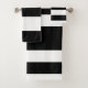 This bathroom towel set features black white stripes designed by deluxephotos.