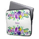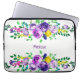 Black & White Stripes & Colorful Peonies Name Laptop Sleeve