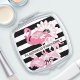 Black & White Stripes Flamingo Vibes Only Compact Mirror