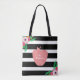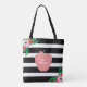 Black + White Stripes Floral Apple Teacher Tote Bag