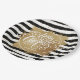 Black White Stripes Gold Faux Foil Christmas Paper Plates