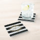 Black & White Stripes Gold Lace Frame Glass Coaster