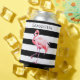 Black & White Stripes Pink Flamingo Custom Name Can Cooler