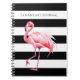 Black & White Stripes Pink Flamingo Custom Name Notebook