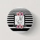 Black & White Stripes Pink Floral Monogram Button