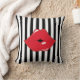 Black & White Stripes Red Lips Throw Pillow.