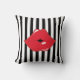 Black & White Stripes Red Lips Throw Pillow