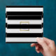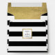Modern black & white stripe design with gold foil effect framed address label on the front & personalized return name & address label on the back - ideal for party & wedding invitations.